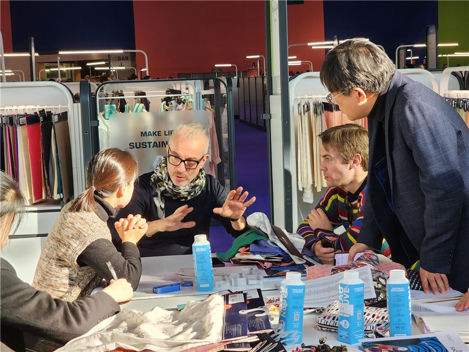更值得一提的是,这次我们所带的产品有大宗的丝绸类高端新产品,契合春夏日高端客人对产品的需求,这些产品中90%以上是含有环保元素的,与目今纺织产品可一连环保理念相符。理念与设计的碰撞,让本次参展产品中的8款产品被组委会专家团队选为盛行趋势样本产品。